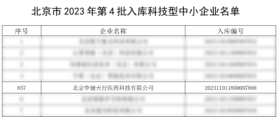 近日,北京市科學(xué)技術(shù)委員會,公布了2023年第四批入庫“北京市科技型中小企業(yè)”名單,北京中健天行醫(yī)藥科技有限公司再次榮獲北京市科技型中小企業(yè)認(rèn)定,這一殊榮標(biāo)志著我司在研發(fā)申報(bào)科技創(chuàng)新領(lǐng)域取得了顯著的成就,也是對其不斷努力和創(chuàng)新能力的高度肯定。