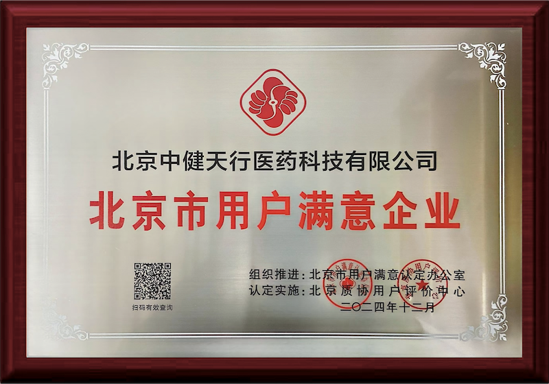 近日,北京市社會(huì)企業(yè)質(zhì)量協(xié)會(huì)公布2024年第八批 “北京市用戶滿意企業(yè)”名單,北京中健天行醫(yī)藥科技有限公司成功入選,獲得“北京市用戶滿意企業(yè)”榮譽(yù)稱(chēng)號(hào)。
