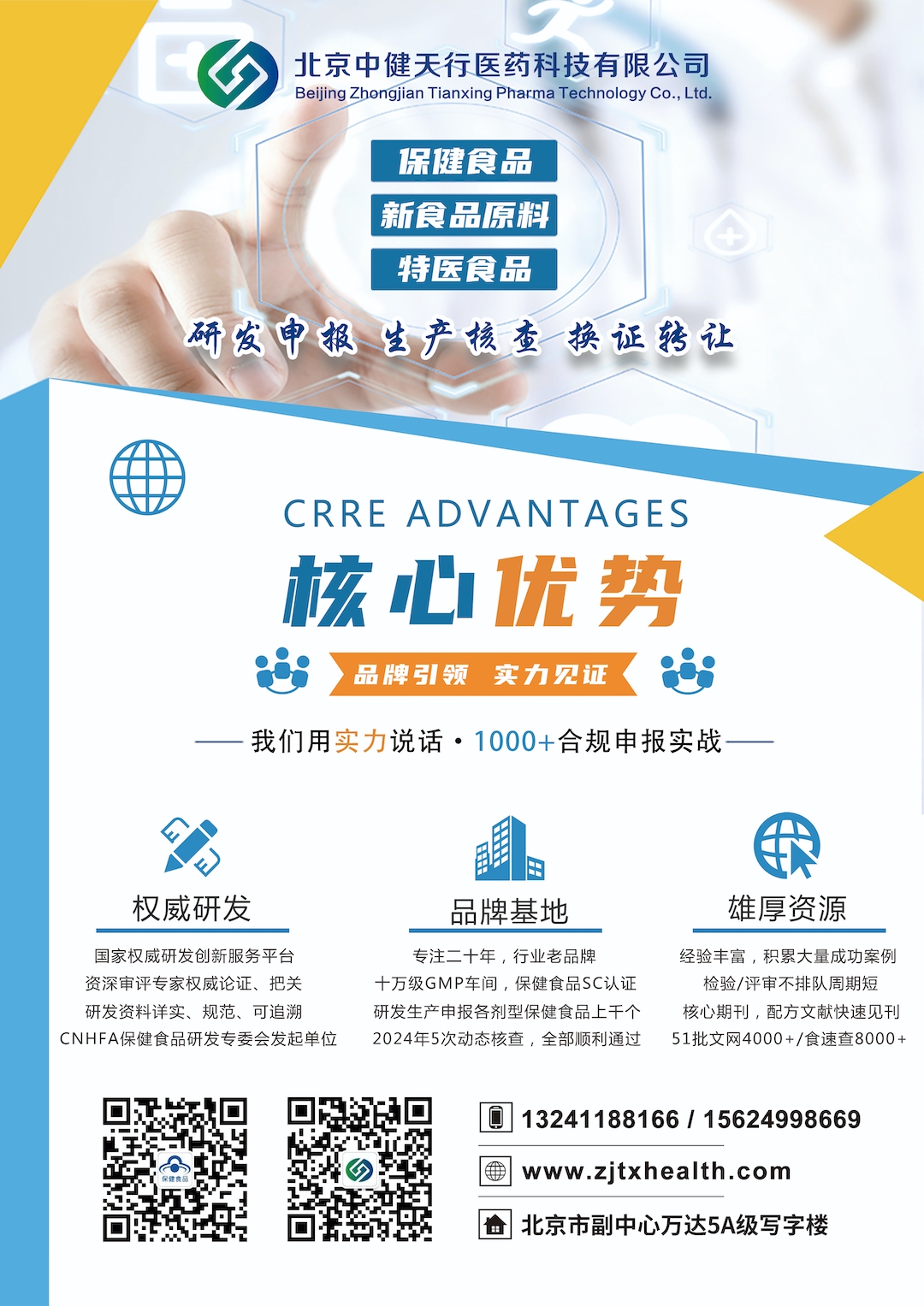 北京中健天行醫(yī)藥科技有限公司(ZJTX PHARMA)成立于2013年,深耕保健食品、“三新”食品、特醫(yī)食品研發(fā)申報十余載,先后獲國家高新技術(shù)企業(yè)、北京市科技型中小企業(yè)、ISO9001體系認(rèn)證、北京市質(zhì)量管理先進(jìn)集體等資質(zhì)榮譽(yù)。我們始終以"注冊備案精準(zhǔn)化、功能評價科學(xué)化、合規(guī)體系標(biāo)準(zhǔn)化"為核心競爭力,在保健食品及新食品原料合規(guī)領(lǐng)域成果豐碩,累計助力超1000家企業(yè)的產(chǎn)品合規(guī)上市,新法規(guī)實施以來已成功申報100余項保健食品新產(chǎn)品,完成20多個產(chǎn)品的動態(tài)核查,申報及核查數(shù)量均居全國前列,同時雙無換證率先獲國家總局受理,新功能研發(fā)完成3項臨床研究,并助力磷蝦油、牛大力粉、紅花苗、麥角硫因等數(shù)十種新食品原料推進(jìn)合規(guī)進(jìn)程,以實戰(zhàn)經(jīng)驗鋪就高效合規(guī)的申報通路。我們可為企業(yè)提供涵蓋產(chǎn)品立項、研發(fā)生產(chǎn)、注冊檢驗、臨床評價、合規(guī)申報、動態(tài)核查及成果轉(zhuǎn)化的全鏈條一站式解決方案,誠邀廣大企業(yè)攜手同行,共拓合規(guī)發(fā)展新藍(lán)海!