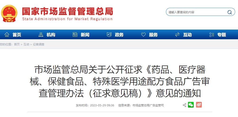 為加強(qiáng)藥品、醫(yī)療器械、保健食品、特殊醫(yī)學(xué)用途配方食品廣告監(jiān)督管理,市場監(jiān)管總局組織對《藥品、醫(yī)療器械、保健食品、特殊醫(yī)學(xué)用途配方食品廣告審查管理暫行辦法》進(jìn)行修訂,起草了《藥品、醫(yī)療器械、保健食品、特殊醫(yī)學(xué)用途配方食品廣告審查管理辦法(征求意見稿)》,現(xiàn)向社會公開征求意見。公眾可通過以下途徑和方式提出意見: