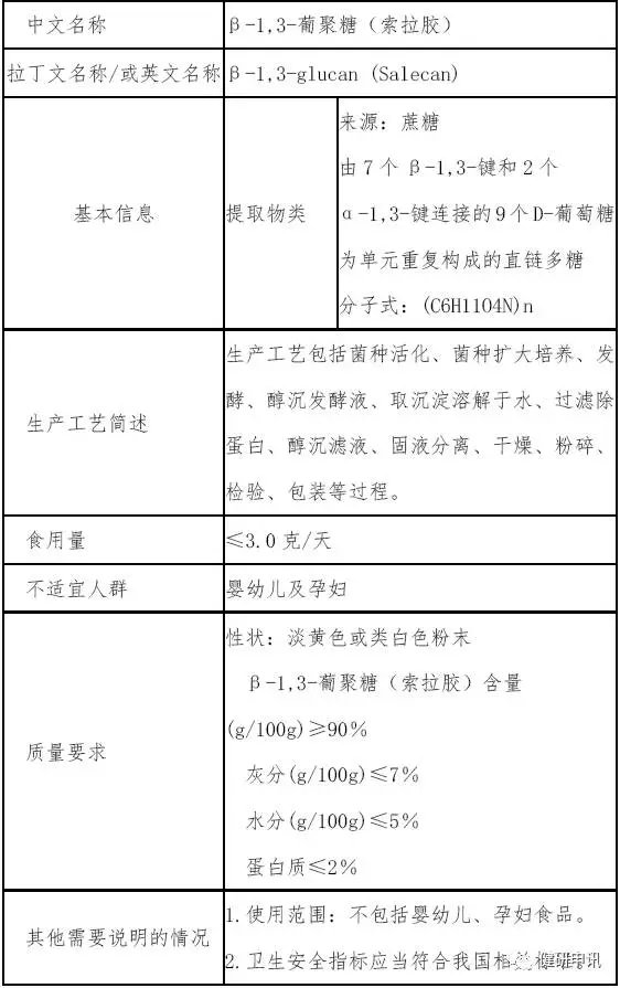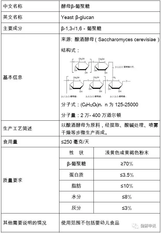 2010年第9號(hào)公告批準(zhǔn)酵母β-葡聚糖為新食品原料,公告內(nèi)容: