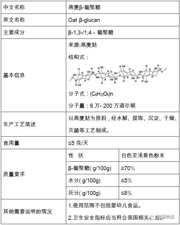 2014年第20號(hào)公告批準(zhǔn)燕麥β-葡聚糖為新食品原料,公告內(nèi)容: