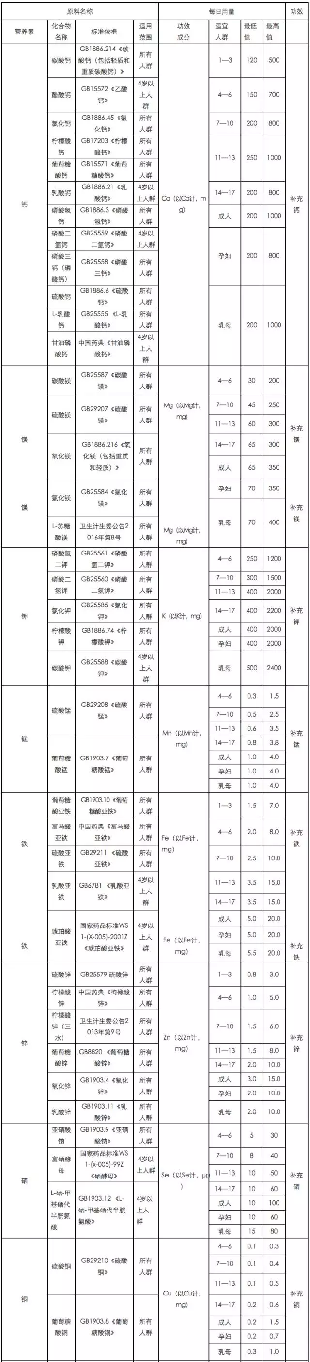 營養(yǎng)素補(bǔ)充劑保健功能目錄