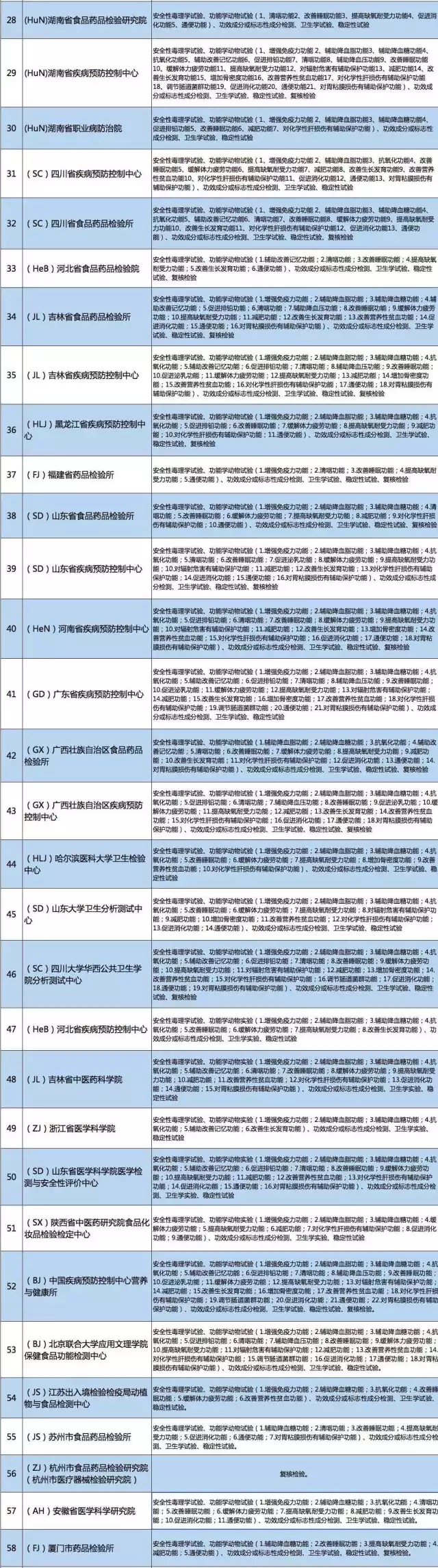 58家保健食品注冊檢驗機(jī)構(gòu)名單