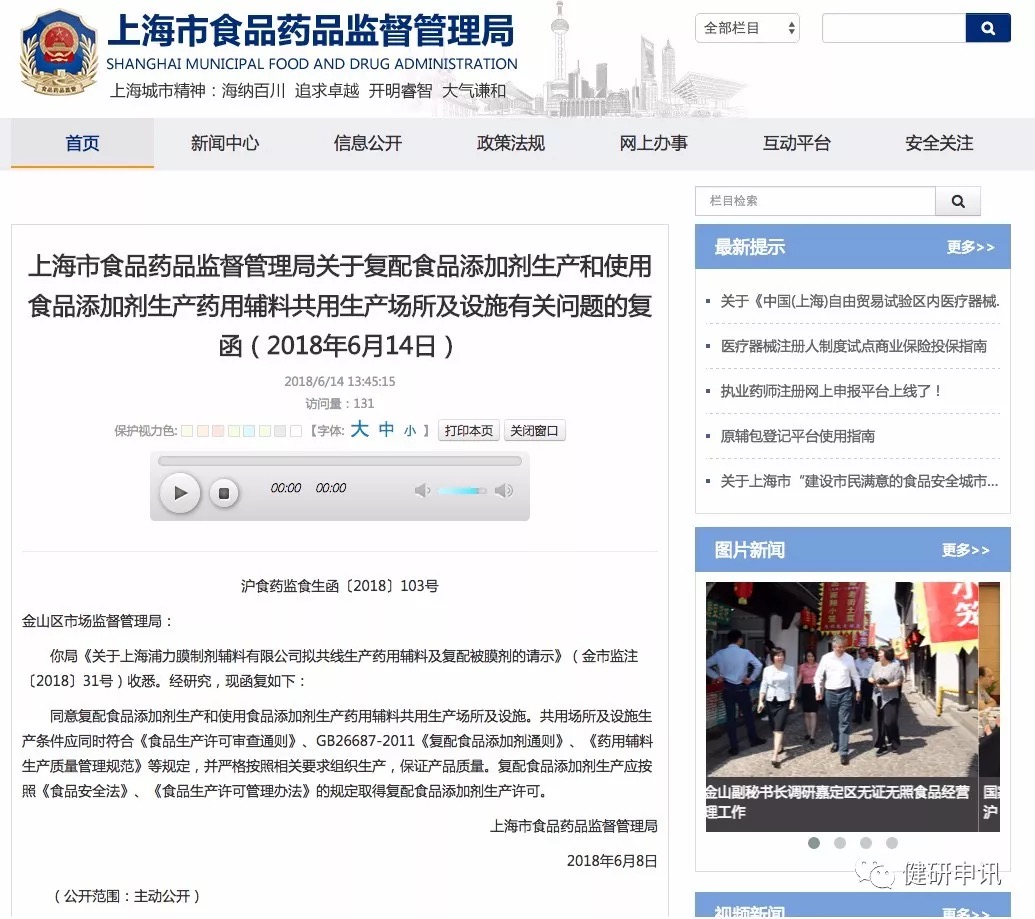 2018年6月8日上海市食藥監(jiān)局批復(fù)金山區(qū)市場監(jiān)管局“關(guān)于復(fù)配食品添加劑生產(chǎn)和使用食品添加劑生產(chǎn)藥用輔料共用生產(chǎn)場所及設(shè)施有關(guān)問題的復(fù)函”,明確同意復(fù)配食品添加劑生產(chǎn)和使用食品添加劑生產(chǎn)藥用輔料共用生產(chǎn)場所及設(shè)施。共用場所及設(shè)施生產(chǎn)條件應(yīng)同時符合《食品生產(chǎn)許可審查通則》、GB26687-2011《復(fù)配食品添加劑通則》、《藥用輔料生產(chǎn)質(zhì)量管理規(guī)范》等規(guī)定,并嚴格按照相關(guān)要求組織生產(chǎn),保證產(chǎn)品質(zhì)量。復(fù)配食品添加劑生產(chǎn)應(yīng)按照《食品安全法》、《食品生產(chǎn)許可管理辦法》的規(guī)定取得復(fù)配食品添加劑生產(chǎn)許可。