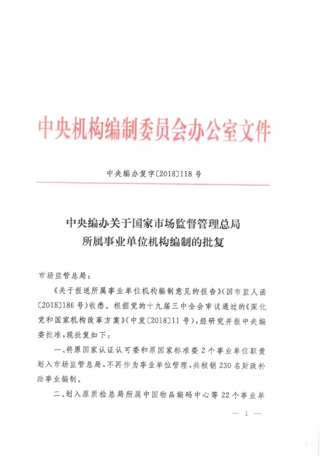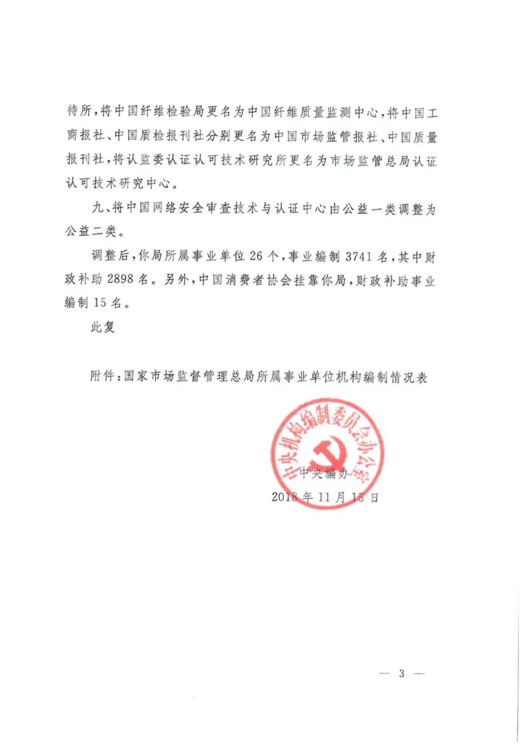 其實(shí)在2018年11月15日中央機(jī)構(gòu)編制委員會辦公室印發(fā)的文件中第三條明確批復(fù):