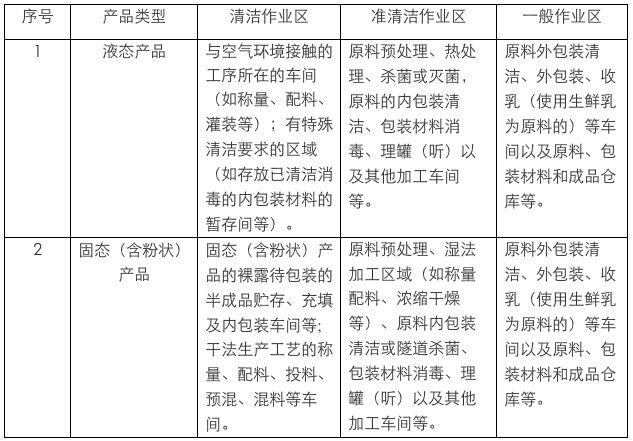 其他類型產(chǎn)品的生產(chǎn)車間及作業(yè)區(qū)劃分參照表2執(zhí)行。