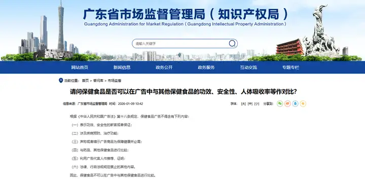請(qǐng)問保健食品是否可以在廣告中與其他保健食品的功效、安全性、人體吸收率等作對(duì)比?
