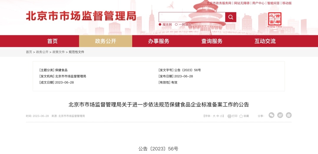 為進(jìn)一步依法規(guī)范本市保健食品企業(yè)標(biāo)準(zhǔn)備案工作,依據(jù)《中華人民共和國食品安全法》《中華人民共和國食品安全法實(shí)施條例》等規(guī)定,現(xiàn)就北京市保健食品企業(yè)標(biāo)準(zhǔn)備案工作有關(guān)事項公告如下: