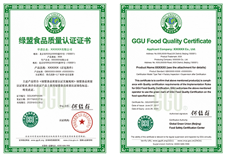 綠盟食品質(zhì)量認證證書(中英文版)