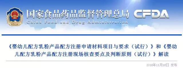 根據(jù)《中華人民共和國食品安全法》、《嬰幼兒配方乳粉產(chǎn)品配方注冊管理辦法》等法律法規(guī),食品藥品監(jiān)管總局組織起草了《申請材料項目與要求》和《現(xiàn)場核查要點及判斷原則》,于2016年8月9日至9月10日公開征求社會意見,經(jīng)反復討論修改完善后,于10月29日發(fā)布。