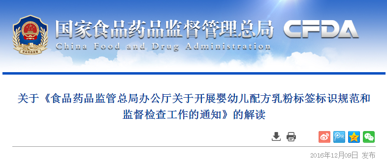 為進(jìn)一步加強(qiáng)嬰幼兒配方乳粉標(biāo)簽標(biāo)識(shí)監(jiān)督管理,規(guī)范嬰幼兒配方乳粉標(biāo)簽標(biāo)注和功能聲稱(chēng)行為,保障嬰幼兒配方乳粉質(zhì)量安全,食品藥品監(jiān)管總局辦公廳印發(fā)了《食品藥品監(jiān)管總局辦公廳關(guān)于開(kāi)展嬰幼兒配方乳粉標(biāo)簽標(biāo)識(shí)規(guī)范和監(jiān)督檢查工作的通知》(食藥監(jiān)辦食監(jiān)一〔2016〕168號(hào),以下簡(jiǎn)稱(chēng)《通知》)。該《通知》于2016年12月7日開(kāi)始實(shí)施。現(xiàn)就有關(guān)問(wèn)題解讀如下: