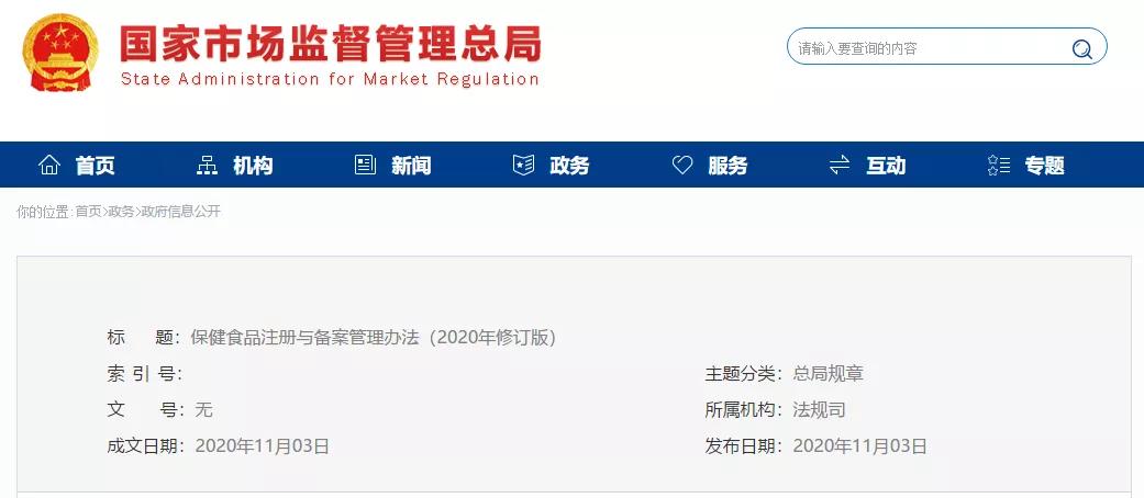 第六十五條 除涉及國家秘密、商業(yè)秘密外,市場監(jiān)督管理部門應(yīng)當(dāng)自完成注冊(cè)或者備案工作之日起20個(gè)工作日內(nèi)根據(jù)相關(guān)職責(zé)在網(wǎng)站公布已經(jīng)注冊(cè)或者備案的保健食品目錄及相關(guān)信息。