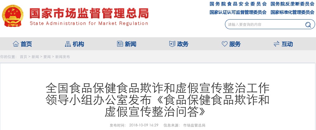 全國(guó)食品保健食品欺詐和虛假宣傳整治工作 領(lǐng)導(dǎo)小組辦公室發(fā)布《食品保健食品欺詐和 虛假宣傳整治問(wèn)答》