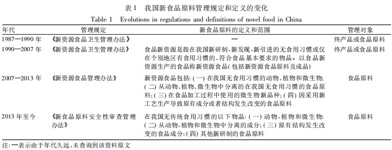 隨著我國的新食品原料管理制度的變革,新食品原料的名稱也經(jīng)歷了從“新資源食品”到“新食品原料”的變化過程,新食品原料這一概念的內(nèi)涵和范圍也發(fā)生了相應(yīng)變化。我國新食品原料定義的變化情況見表 1。